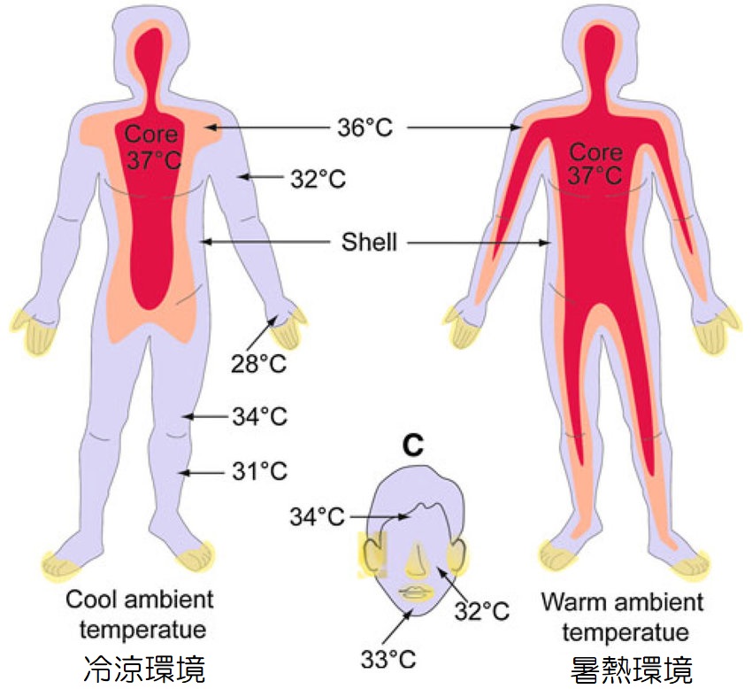 さて、生命維持に重要な臓器である心臓や肝臓、腎臓、肺、脳などの内臓は身体の内部奥深くにあり、その深部体温は酵素が活発に働くことができる37℃前後に保たれています。