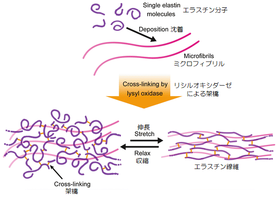 ▲エラスチン線維の伸縮(引用:横浜市立大学医学部)