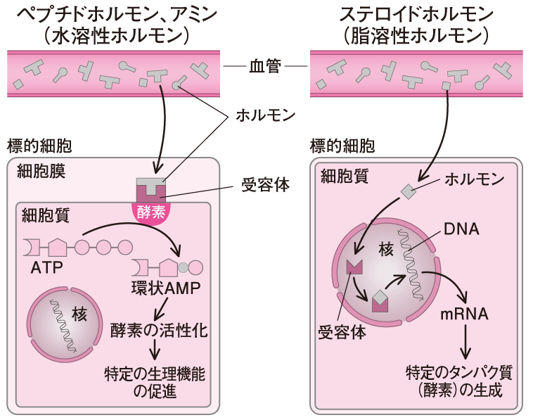 ▲水溶性ホルモンと脂溶性ホルモン(引用:看護roo!/改)