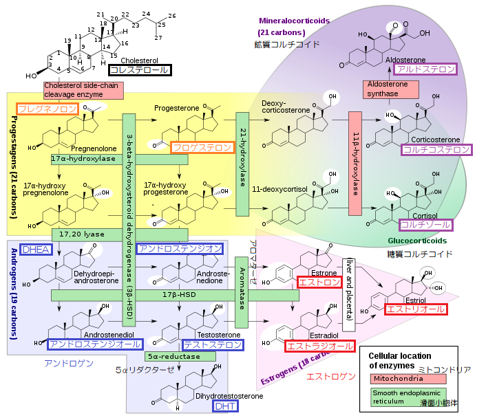 ▲ステロイドホルモンの合成経路(引用:Wikipedia/改)