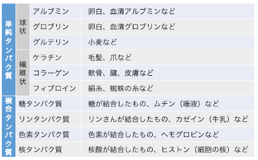 ▲タンパク質の種類(引用:受験メモ)